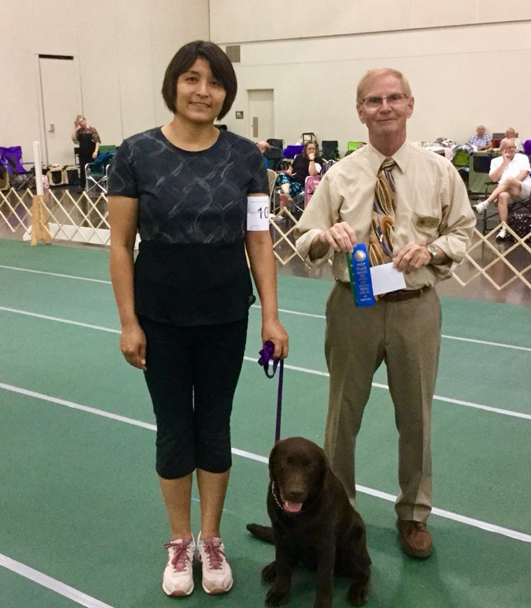 9/12-13/2020 Bruno made his debut at UKC show this weekend with Best of Winners x3, Best of Breed & Group 4!! His big brown tail was wagging whole time!
