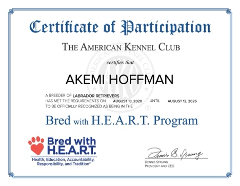 12/1/2023 Harmonygrove is now officially certified as an “AKC BREEDER OF MERIT”!